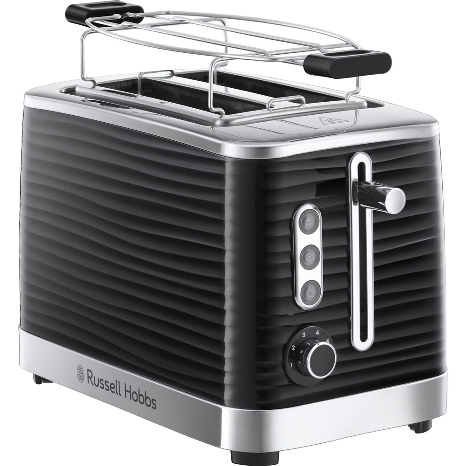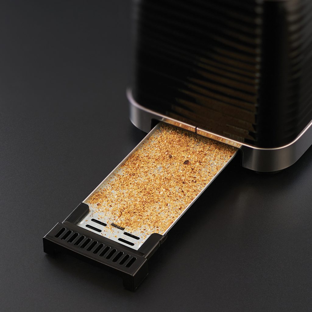 Prémiový topinkovač na 2 krajíce s vysokým leskem a chromovými prvky v designu texturovaných vlnek