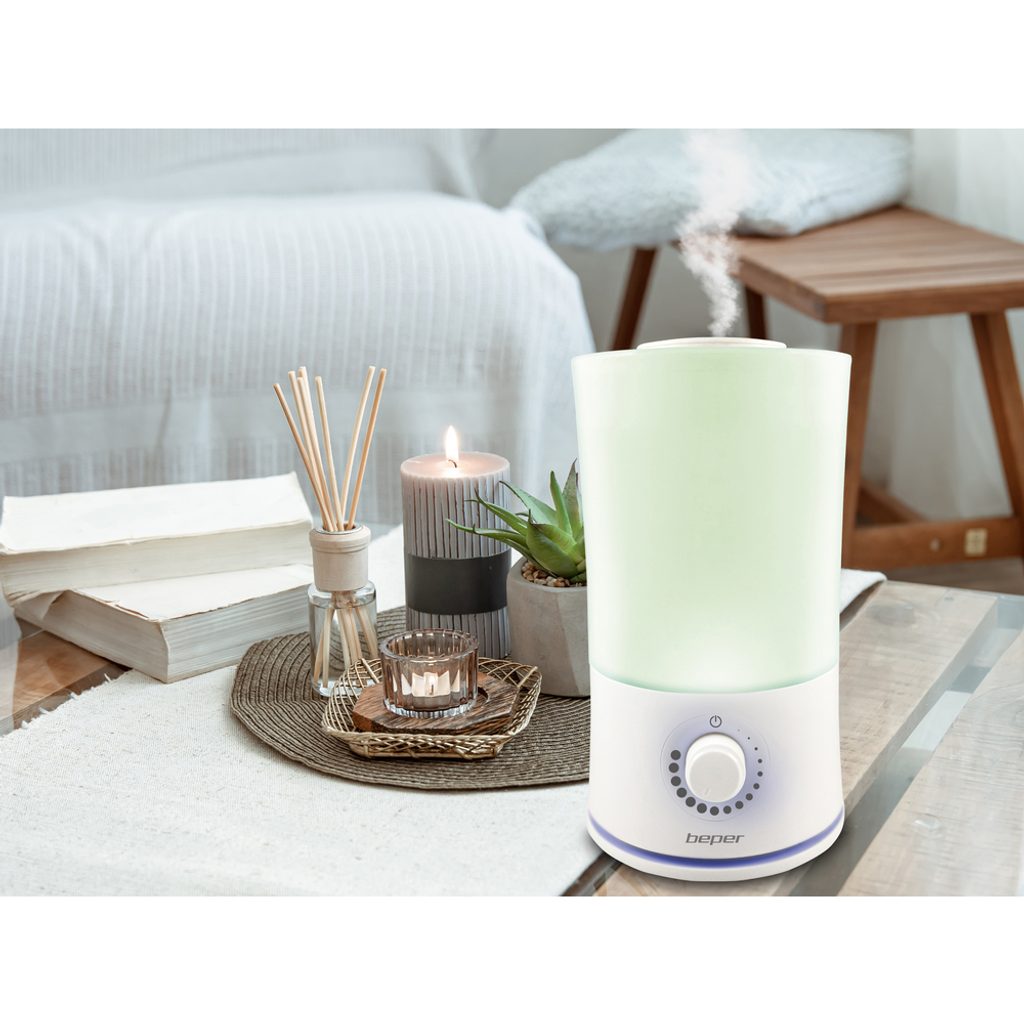 Předpokládá se, že éterické oleje mají antivirové, protiplísňové a antioxidační vlastnosti a difuzor BEPER je rovnoměrně a kontinuálně uvolňuje do vzduchu – aromaterapie může pomoci s uvolněním, snížením stresu nebo úzkosti či posílit imunitní systém, a také pomoci zmírnit příznaky ucpaných dutin a alergií nebo snížit pocit suché kůže.