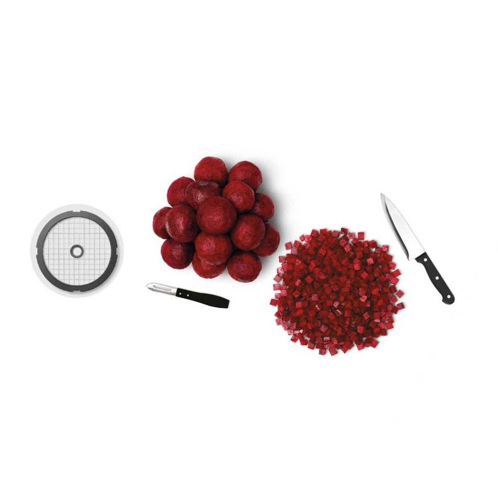 Slouží k sekání potravin, krájení na jemné proužky, krájení na silné proužky (např. na hranolky), krájí na kostičky, šlehání emulzí,