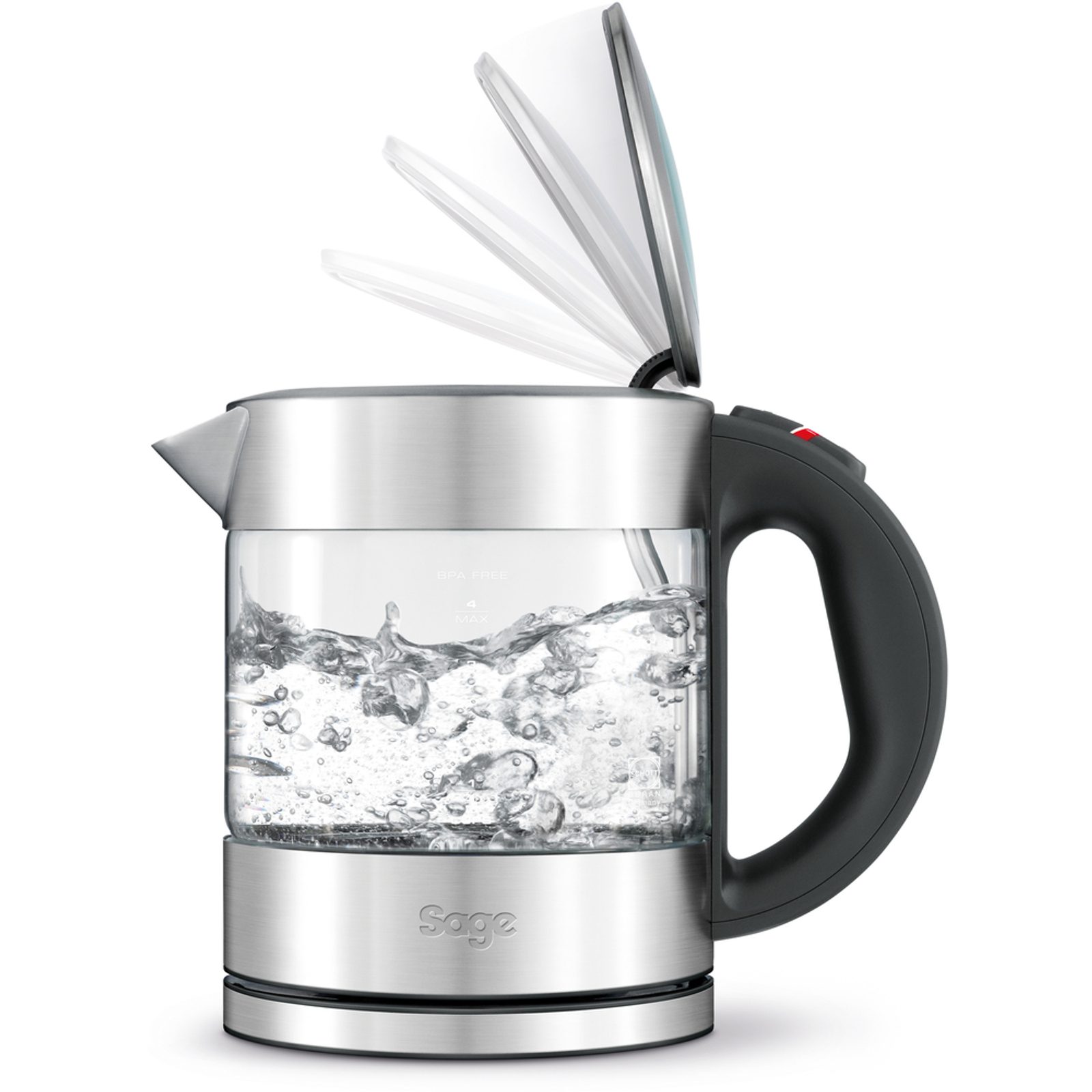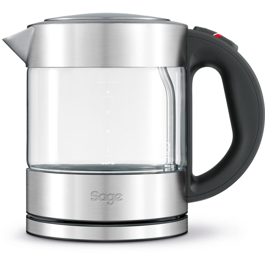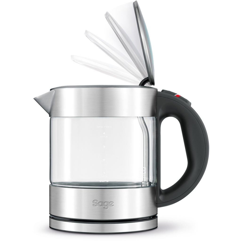 Kompaktní skleněná konvice z průzračně čistého skla o objemu 1l s technologií tlumeného otevírání víka.