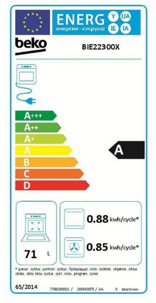 Spotřeba el. energie (konvenční pečení) 0,88 kWh