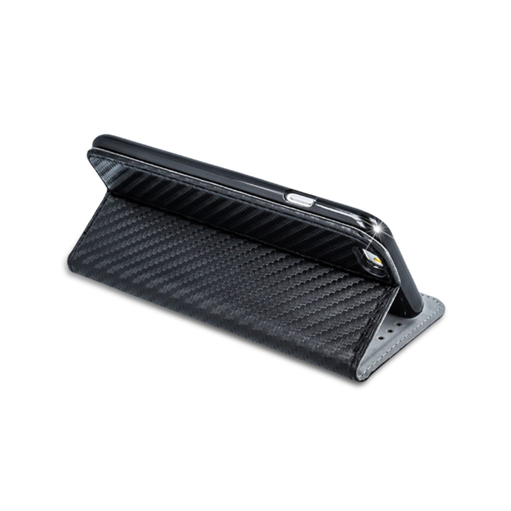 Magnetické zavírání zaručuje bezpečnost a stabilitu a zároveň umožňuje snadné otevírání a zavírání pouzdra. Pouzdro má zesílené rohy, které dodatečně chrání telefon v případě pádů a nárazů. Uvnitř pouzdra se nachází kapsa na karty, takže nemusíte nosit peněženku. Stylový design imitující karbonová vlákna dodává pouzdru moderní a elegantní vzhled.