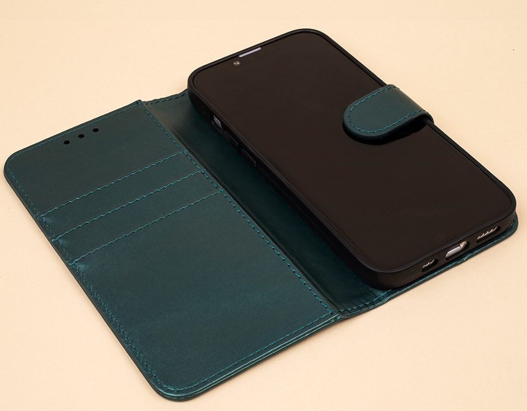 Vnitřek krytu obsahuje tři pečlivě šité kapsy na karty, které vám