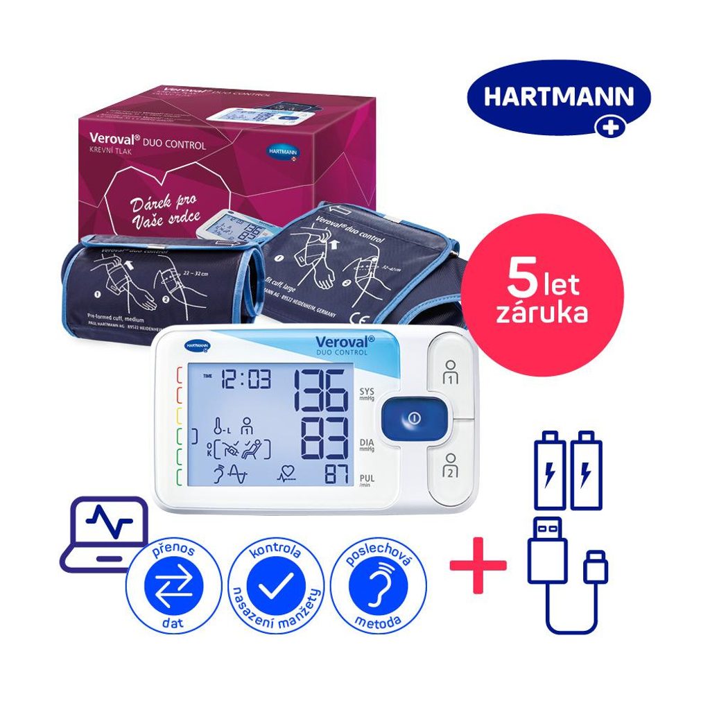 Tlakoměry Veroval® dodává na trh značka HARTMANN, na jejíž zdravotní pomůcky se již přes 200 let spoléhají lidé ve více než 100 zemích světa. Značka HARTMANN svým tlakoměrům věří, a proto vám na tlakoměr Veroval® DUO CONTROL dává nadstandardní 5letou záruku.