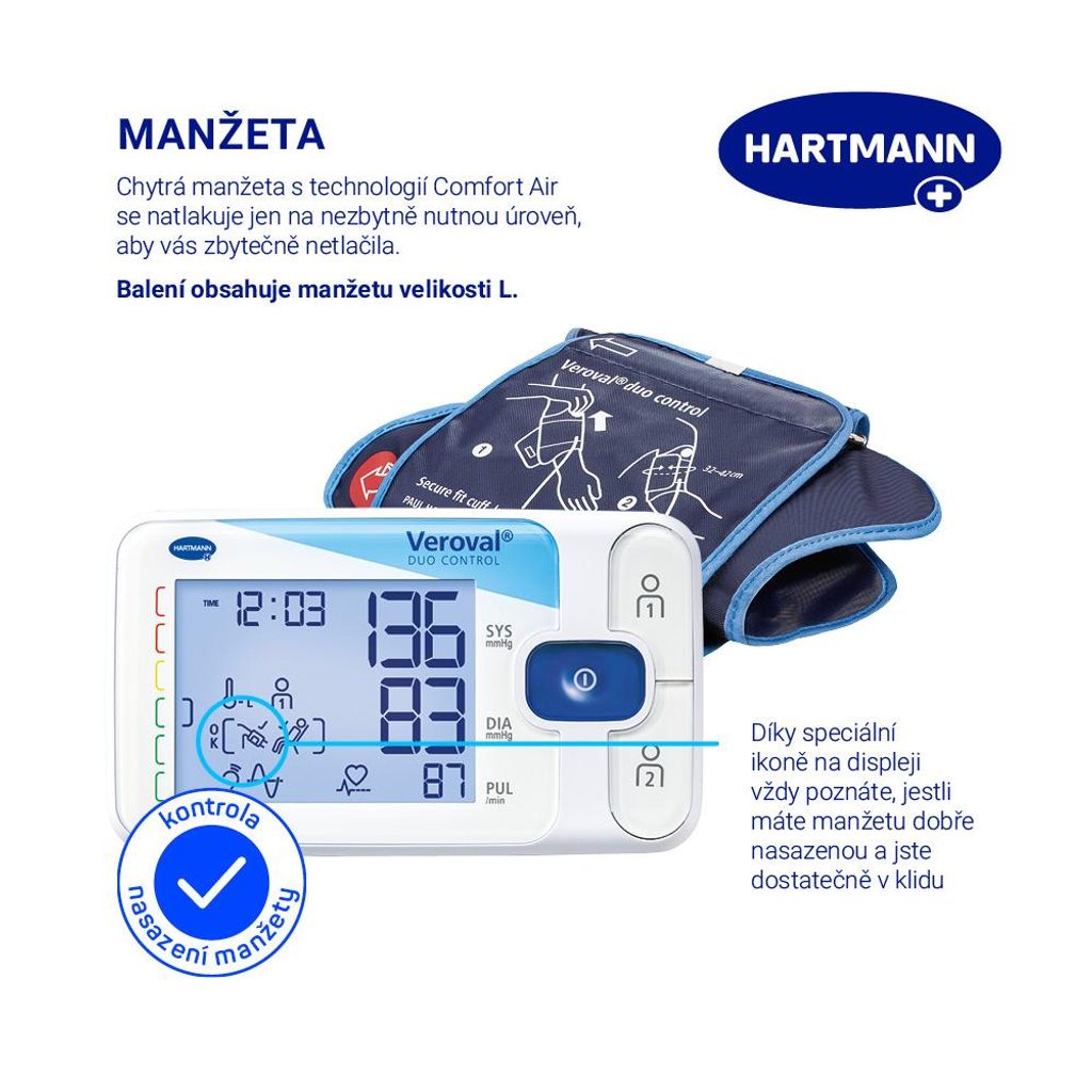 Manžeta: Manžeta tlakoměru Veroval duo control s kovovým třmínkem velikosti Medium pro obvod paže 22 až 32 cm