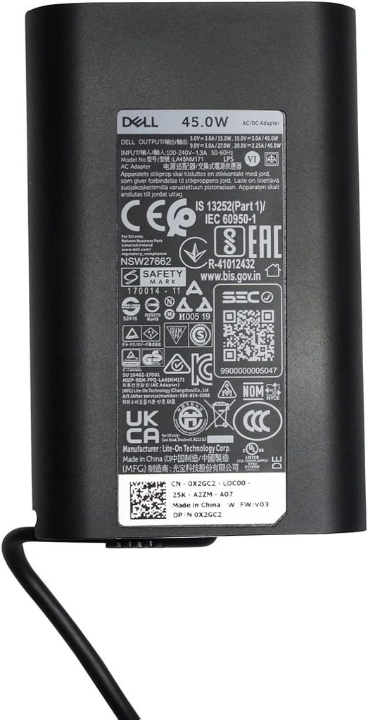 Tento 45W napájecí adaptér značky Dell™ je konstruován tak, aby vyhovoval potřebám vašeho notebooku Dell™ . S Male USB-C konektor, umožňuje práci s počítačem a současné nabíjení baterie z elektrické sítě.