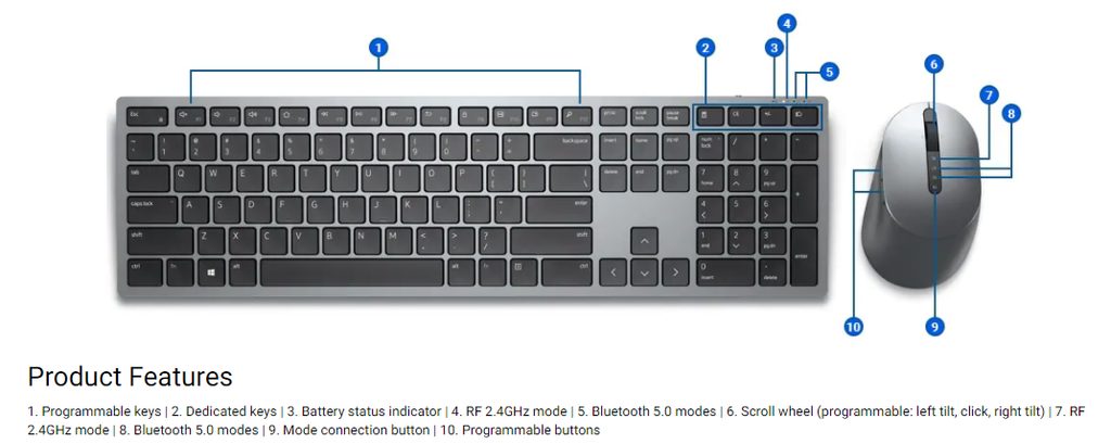 Bezdrátová klávesnice a myš Dell Premier jsou vyrobeny tak, že mají jednu z nejdelěích výdrží baterie a to až 36 měsíců. Můžete si být jisti, že tato kombinace klávesnice a myši byla důkladně testována, aby bylo zajištěno bezproblémové připojení k vašemu počítači Dell. Klávesnice nabízí 128bitové šifrování AES (Advanced Encryption Standard) chránící přenos dat mezi vašimi počítači a zařízeními a poskytuje vám během psaní zabezpečené připojení.