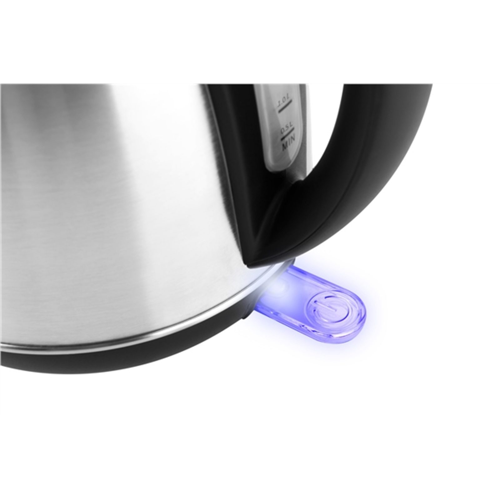 Ze zadní strany konvice je umístěn vodoznak, který ukazuje množství vody v konvici. Najdete tady i tlačítko pro otvírání víka konvice. Ve spodní části je pak světelná kontrolka, která upozorní na spuštěné ohřívání.