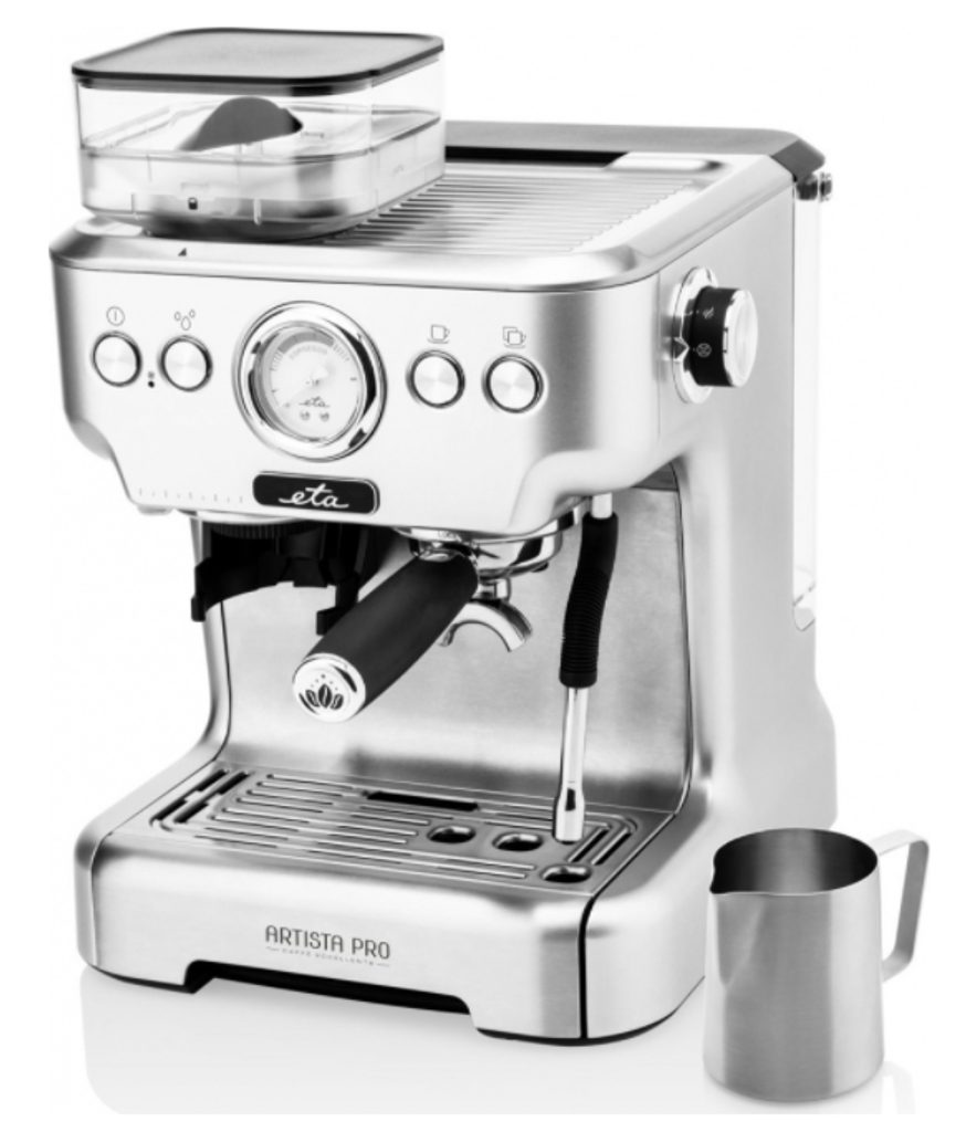 Profesionální celokovový design prozrazuje o pákovém kávovaru ETA Artista PRO již na první pohled mnohé. Mezi běžnými kávovary pro domácí použití vyniká nejen svým vzhledem, ale především tím, co umí. Snadno s ním proniknete do tajů profesionální přípravy kávy, potěšit ale umí i ty, kteří si prostě chtějí dopřát dobrou kávu v pohodlí domova bez jakýchkoliv kompromisů.
