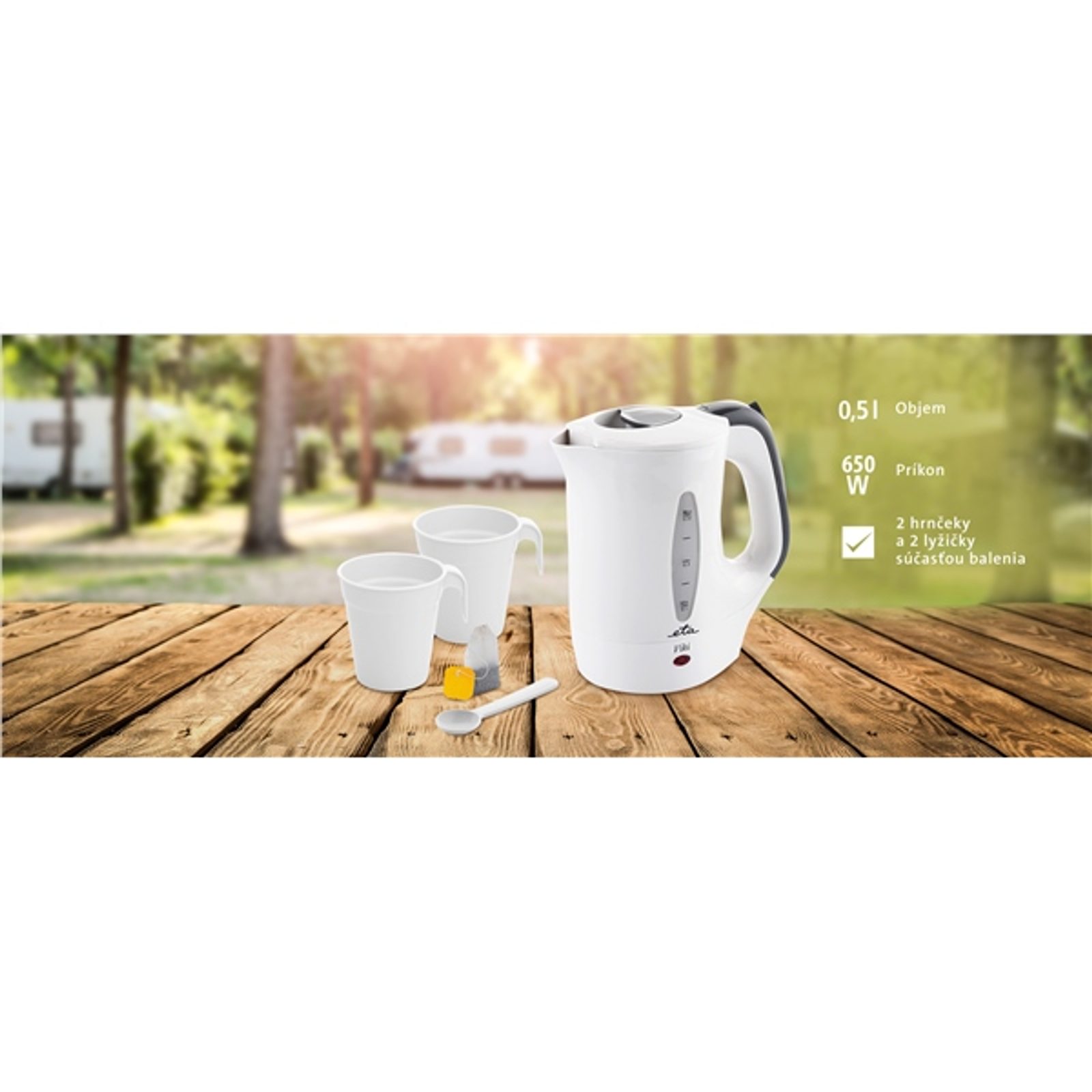 Pro pocit pohodlí i na cestách mnohdy stačí zdánlivá maličkost – třeba něco na zahřátí. S kompaktní rychlovarnou konvicí ETA Viki si můžete uvařit teplý čaj, kávu či instantní polévku kdekoliv, kde najdete elektrickou zásuvku. Díky malým rozměrům vám nebude zabírat místo v kufru či tašce, a přesto ve svých útrobách dokáže uschovat dva cestovní hrnečky a dvě plastové lžičky, které jsou součástí balení.