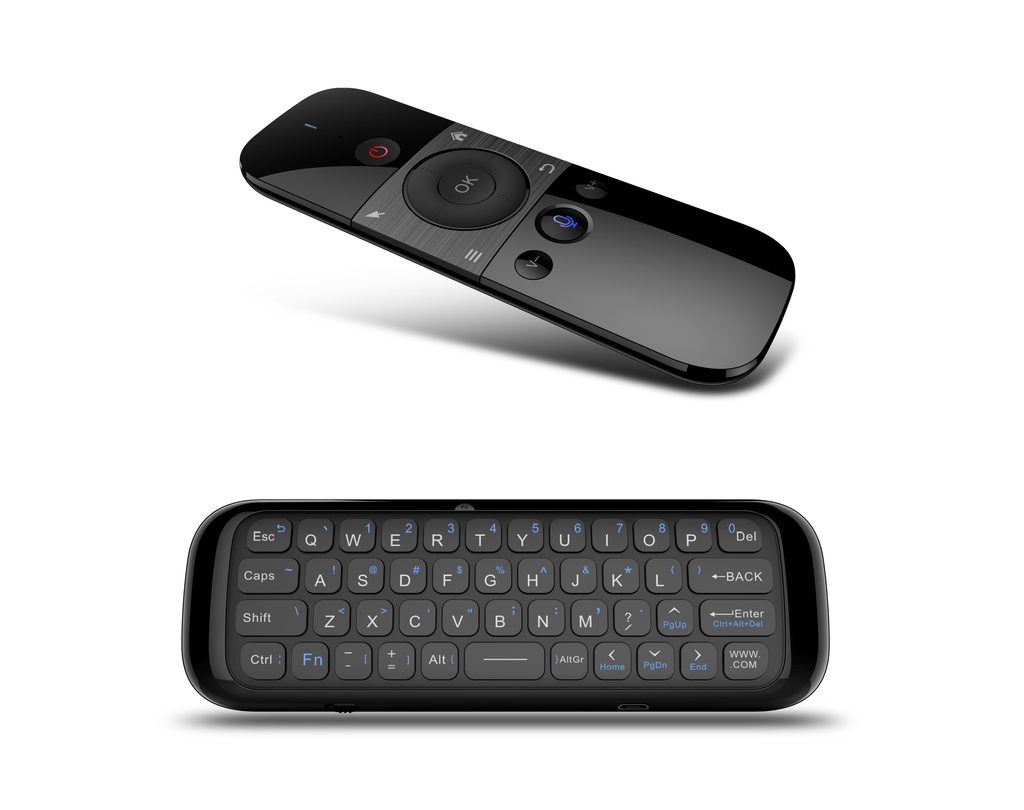 • Gyroskopická myš s nastavitelnou citlivostí • 6ti-osé měření pohybu pomocí vnitřních senzorů • Podpora ovládání hlasem, vestavěný mikrofon • Programovatelné tlačítko pro vysílání infračerveného signálu • Klávesnice na zadní straně zařízení • Nabíjení integrované baterie pomocí microUSB kabelu