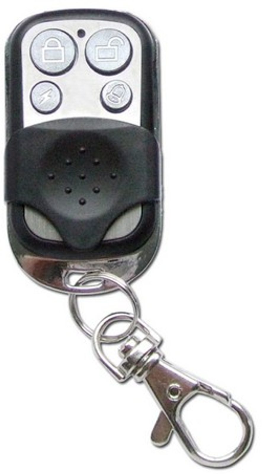 • alarm (SOS tlačítko): aktivuje okamžitý nouzový poplach, např. v případě loupežného přepadení za situace, kdy je alarm vypnutý v deaktivovaném režimu. Na hlavní jednotce alarmu bude blikat červená kontrolka a systém vyvolá poplach, rozešle SMS a vytočí přednastavená čísla