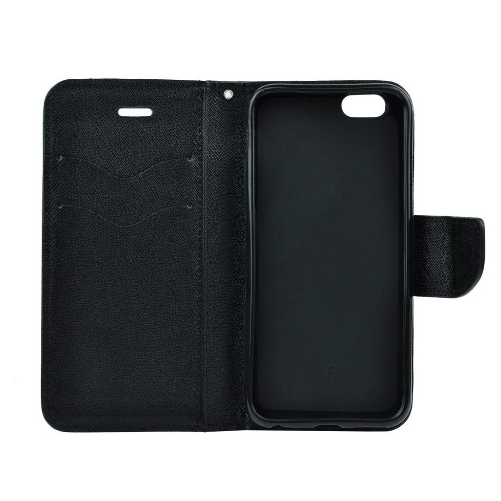 Fancy Book cover is a wallet and protect your phone in one. The cover has a pocket for bank cards and the necessary documents and submitted to the TV stand, which makes it easy to watch movies. The cover has a convenient velcro magnet. The interior is made of flexible silicone molds itself to the shape of your phone model and has cutouts for function buttons that make using the device. Made from high-quality eco-leather ensures adequate protection of your phone from scratches and damage and the pockets facilitate easy storage necessary documents. Fancy Book filed with the position of the tv stand that allows eg. watch movies. Cover available in a wide range of colours - the inside cover is always present in the color fastener. Material: Eco-leather & silicone Colour: Black