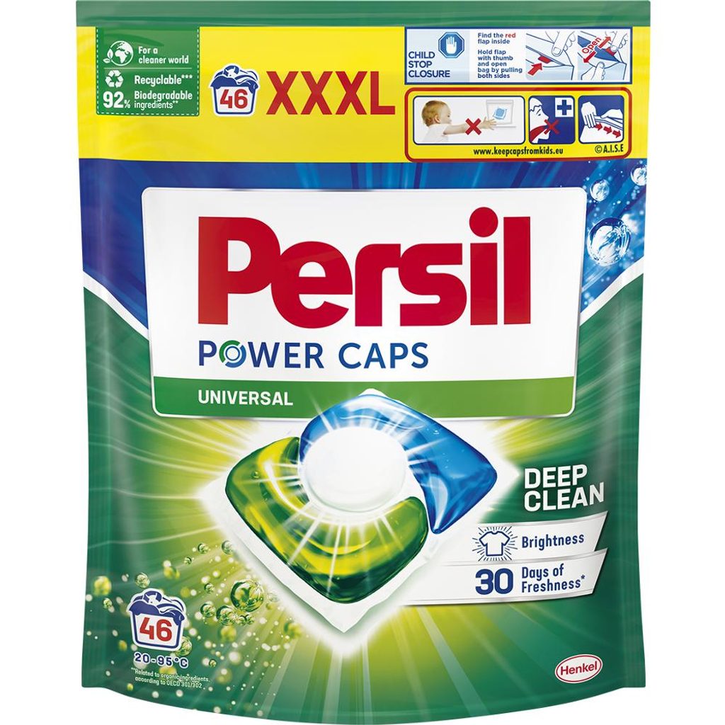 Kapsle na praní Persil Power Caps s technologií Deep Clean obsahují jedinečnou kombinaci aktivních složek, které působí proti odolným skvrnám. Prací prostředek proniká hluboko do vláken a odstraňuje i ty nejmenší molekuly špíny pro dokonalý výsledek a zářivě čisté oblečení. Dopřejte si dokonalou čistotu a dlouhotrvající svěžest Persil. Persil Power Caps jsou účinné i při praní na nízké teploty, už od 20 °C. Pro čistější svět jsou prací kapsle dodávány ve recyklovatelném obalu.