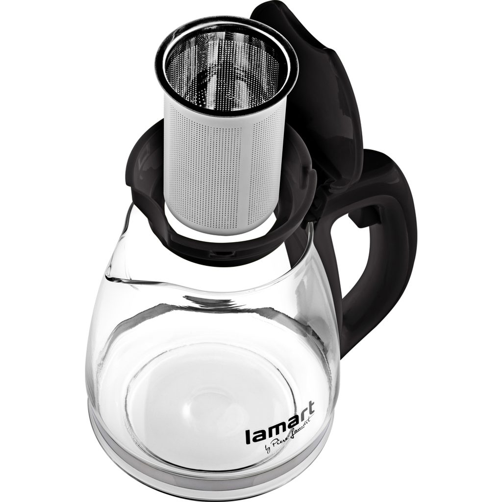 Skleněná čajová konvice vhodná pro všechny typy čajů, čajových i studených nápojů. Madlo konvice je vyrobeno z odolného plastu. Konvice obsahuje nerezové sítko pro sypké čaje, kousky ovoce nebo čajové bylinky. Konvice je opatřena plastovým víčkem pro snadný přístup k čištění a plnění nádoby.