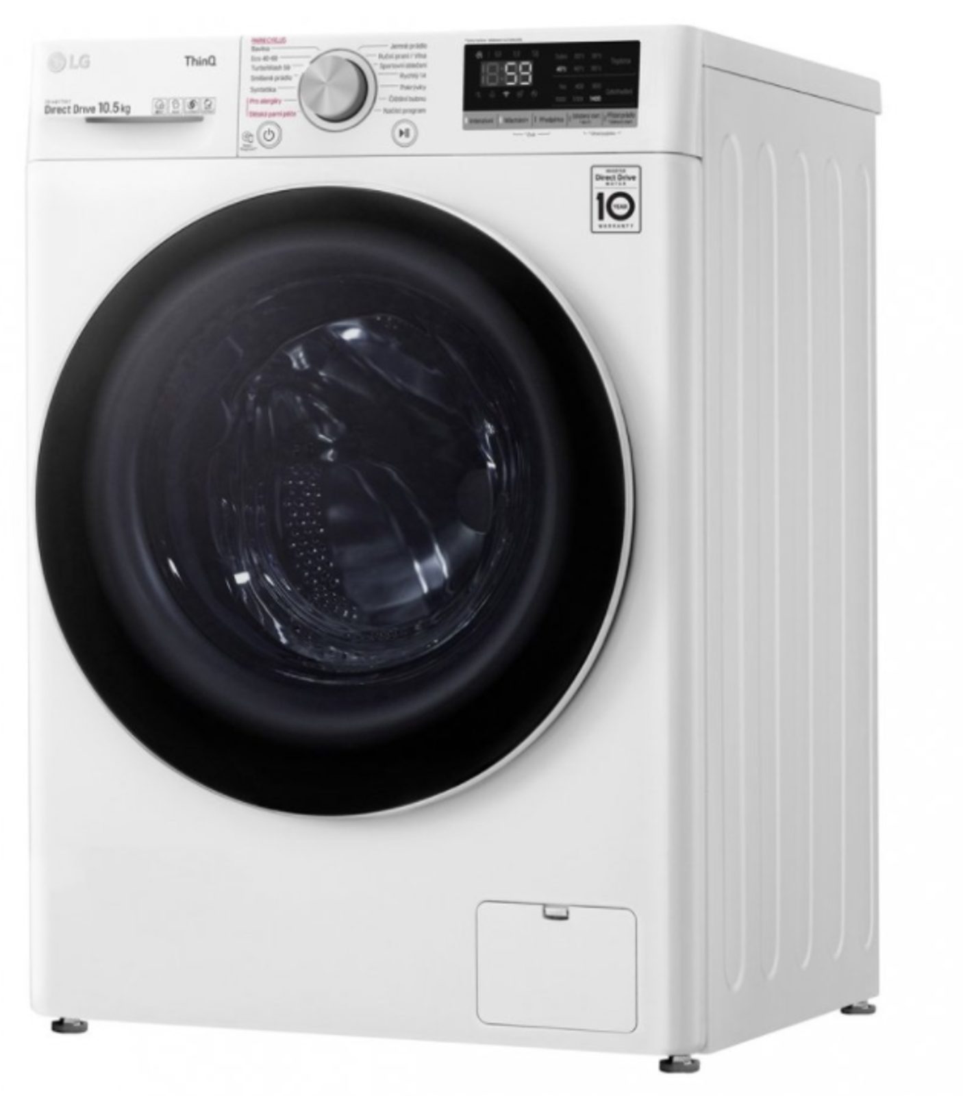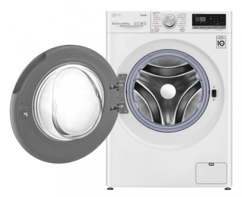 předem plněná pračka • kapacita 10,5 kg • energetická třída B • 1 360 ot./min • invertorový Direct Drive™ motor • technologie AI DD™ • parní praní Steam™ • TwinWash™ • TurboWash™ • LG ThinQ + Wi-Fi • Odložený start • dětský zámek • LED dotykový displej • rozměry 850 × 600 × 565 mm • hmotnost 70 kg