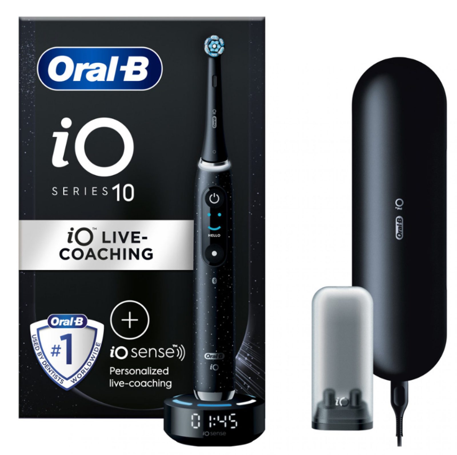 Elektrický zubní kartáček iO 10 s revoluční chytrou nabíječkou iO Sense přizpůsobuje čištění vašim potřebám a poskytuje zpětnou vazbu v reálném čase. Pomůže dokonale pokrýt zuby, dodržet dobu čištění a správný tlak, takže čištění bude úžasně jednoduché. Kombinuje jemné mikrovibrace s unikátní kulatou kartáčkovou hlavou inspirovanou zubními lékaři, která přináší pocit profesionální čistoty každý den. Aby byly výsledky nejlepší, vyměňujte kartáčkovou hlavu Oral-B iO každé 3 měsíce za novou..