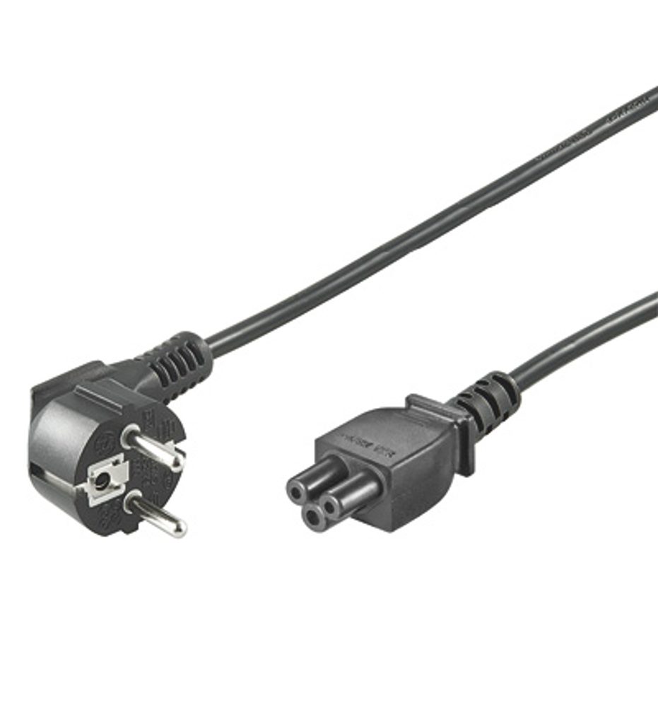 Napájecí kabel v černém provedení pro notebook. Třížilový kabel je zakončený zástrčkou typu "Mickey mouse" IEC 320 C5.