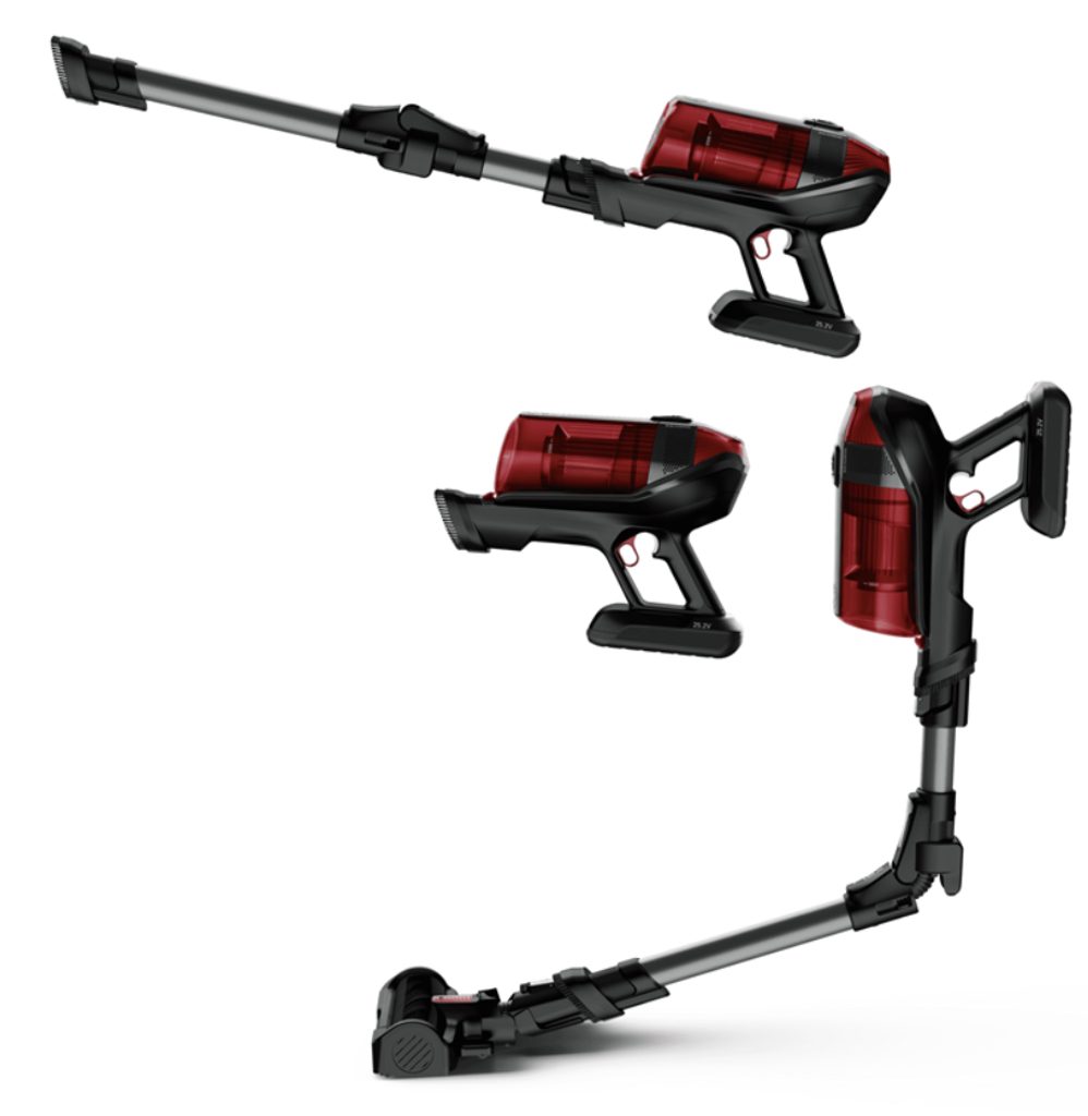 - Hmotnost: 3,2 kg (tyčový vysavač), 1,9 kg (ruční vysavač)
