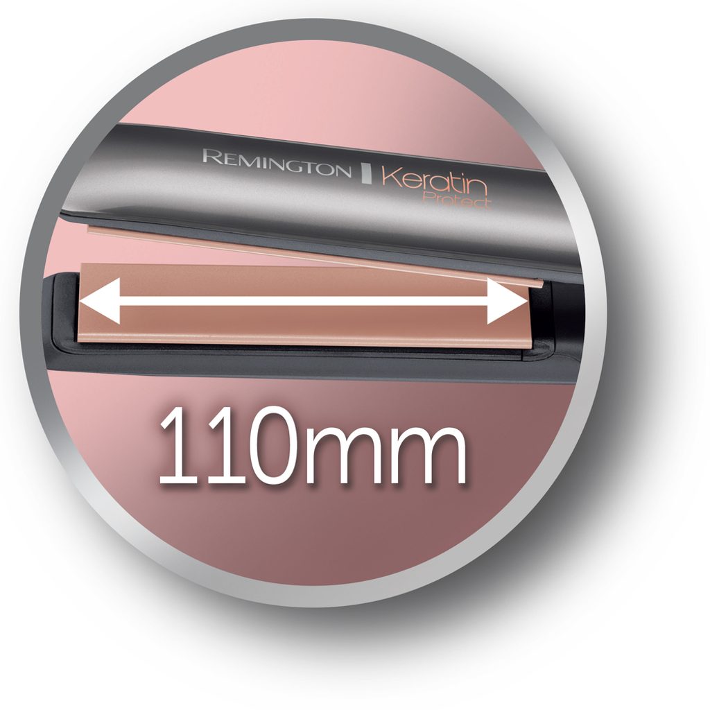 Žehlička na vlasy Keratin Protect s povrchem ze zdokonalené keramiky napuštěné keratinem a mandlovým olejem