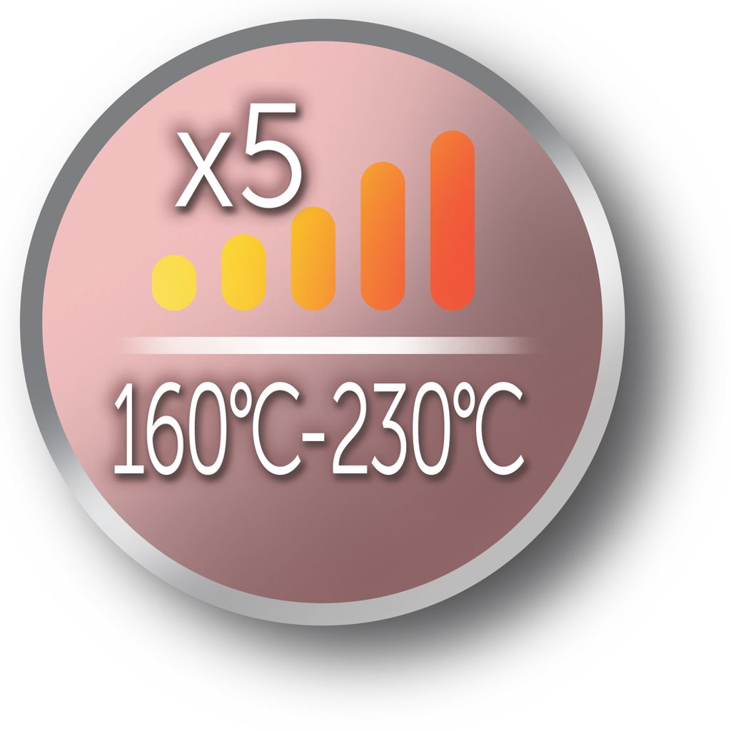 5 teplotních nastavení (150°-230°C)