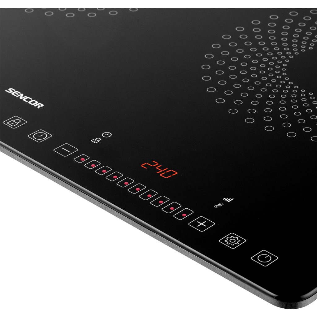 Vařič a jednotlivé funkce ovládáte dotykovými tlačítky. Teplotu a výkon nastavíte pouhým pohybem prstu vpravo a vlevo, tzv. sliderem. O teplotě a výkonu vás informuje přehledný velký LCD displej s červeným podsvětlením.