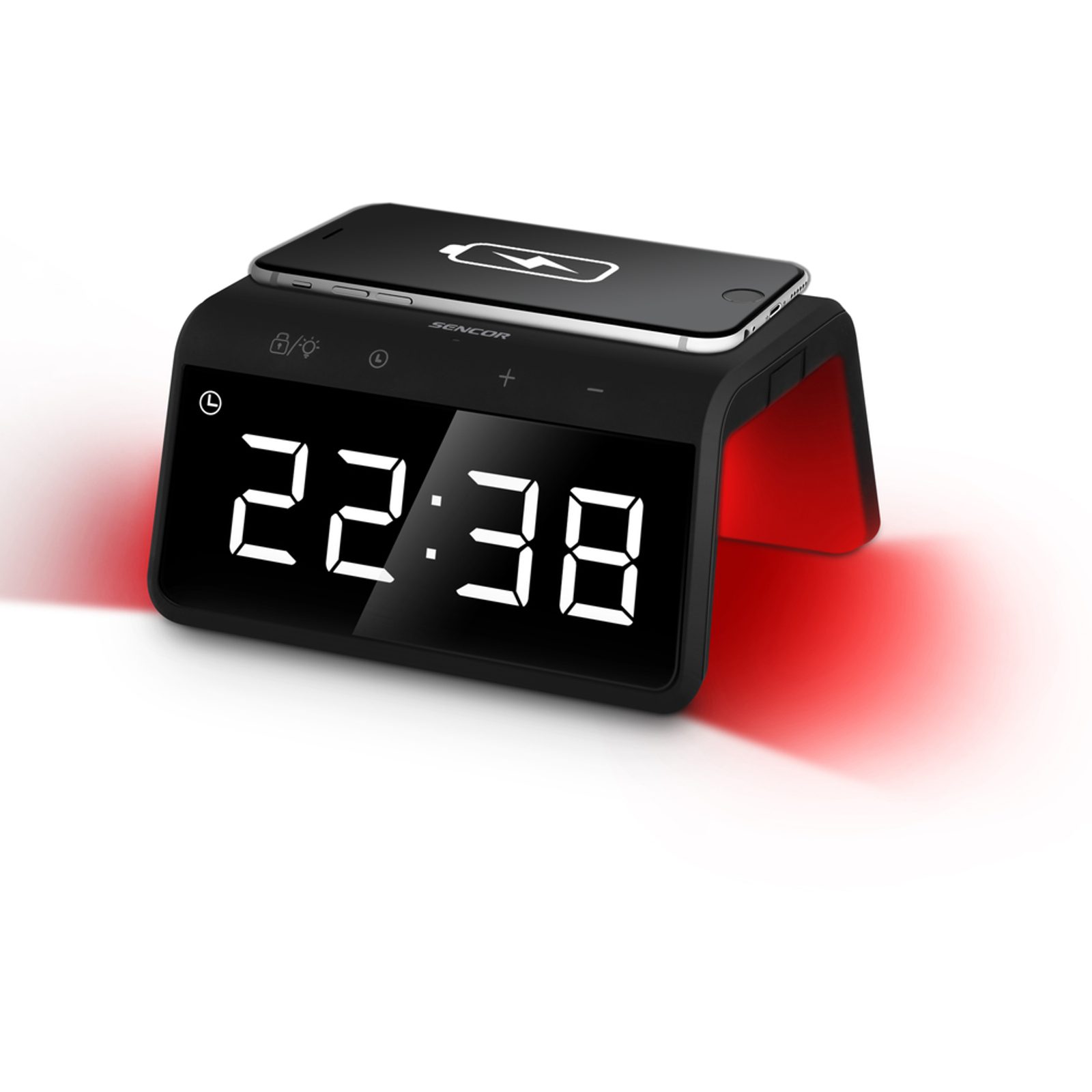 Digitální budík s rychlou bezdrátovou nabíječkou a barevným podsvícením