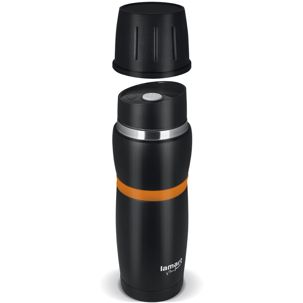 Termoska vyrobena z vysoce kvalitní nerezavějící oceli. Tlačítkový mechanismus otevření termosky vyroben z vysoce kvalitního plastu. Nerezová vložka činí termosku téměř nerozbitnou. Pojistkový mechanismus zabraňující nečekanému otevření. Praktický hrníček.