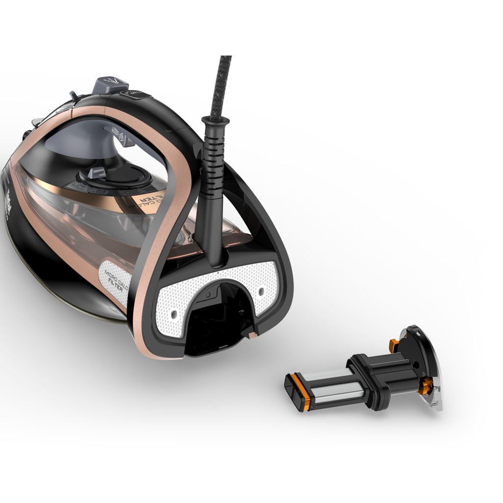 Unikátní systém filtru mikročástic vodního kamene pomáhá díky filtraci veškeré páry bránit vzniku usazenin a skvrn od vodního kamene na oděvech