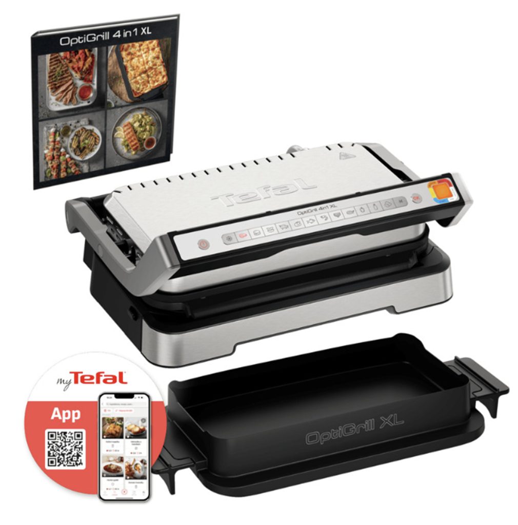 Kontaktní gril Tefal OptiGrill 4v1 XL přináší kombinaci inteligentní technologie a univerzálního využití pro každodenní vaření. Automaticky přizpůsobuje dobu přípravy podle tloušťky surovin, takže dosáhnete ideálního propečení bez složitého nastavování. Díky funkci 4v1 jej můžete použít jako gril, barbecue, troubu nebo pro přípravu kompletních pokrmů. Velká grilovací plocha a praktické příslušenství z něj dělají ideální volbu pro rodinu i setkání s přáteli.