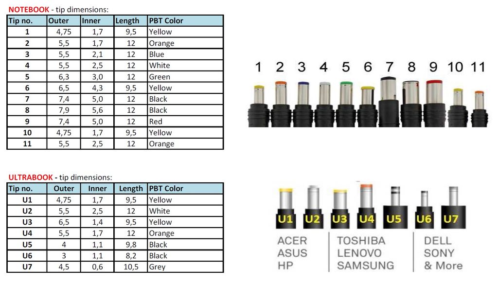 * koncovka pro notebook (Acer, Compaq)